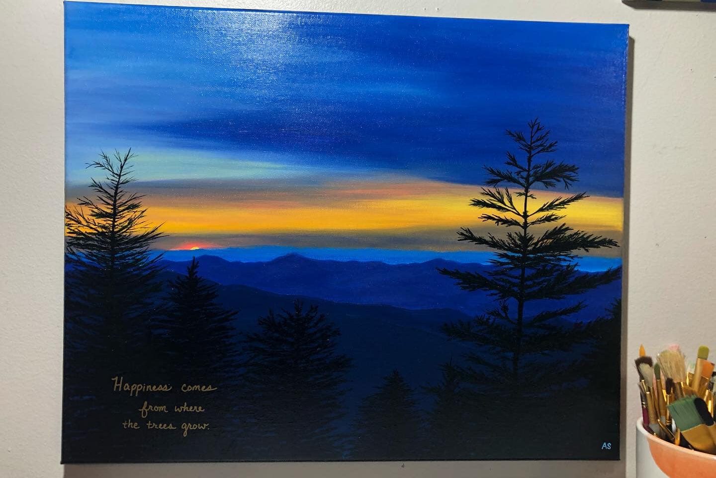 I’ve always been drawn to the palette of nature, the intricacies of tiny wildflowers and glory of magnificent sunsets. Rural landscapes are where I feel at home, and in my work you’ll see some of my favorite scenes – trees silhouetted against hushed evening skies and layers of misty mountains fading into the horizon.